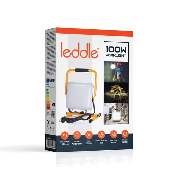 Leddle Bouwlamp - 100W - 6400K - IP65 - 10.000lm - PC Cover - 1,5m