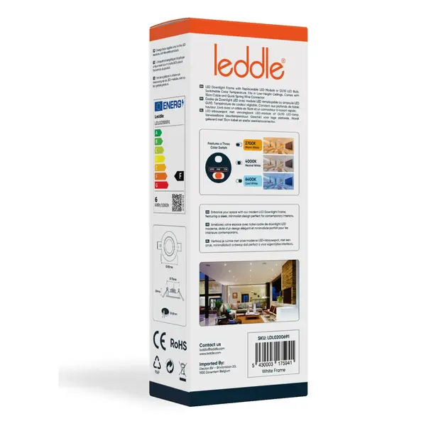 LED-inbouwspot met vervangbare LED-module of GU10 LED-lamp. Verwisselbare kleurtemperatuur. Geschikt voor lage plafonds. Wordt geleverd met 15cm kabel en snelle veerklemconnector.