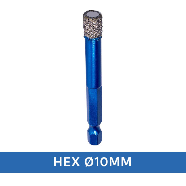Maxifix diamantboor heeft een HEX-aansluiting (zeskant) waardoor deze eenvoudig gebruikt kan worden op een (elektrische) boormachine zonder klopstand.