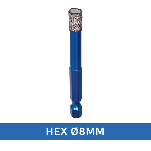 Maxifix diamantboor heeft een HEX-aansluiting (zeskant) waardoor deze eenvoudig gebruikt kan worden op een (elektrische) boormachine zonder klopstand.