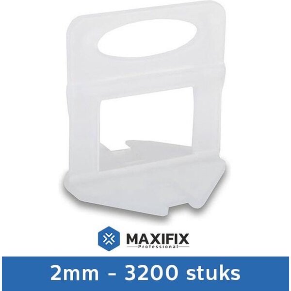 Zak met 3200 extra Maxifix Levelling Clips, speciaal ontworpen voor de professional. Perfect als aanvulling op uw bestaande Maxifix Levelling Kit, of als reserve. De clips zijn van hoge kwaliteit en geschikt voor tegels met een dikte tussen 3 en 13 mm. De Maxifix Levelling Clips kunnen als afstand houder worden gebruikt, en zorgen voor een voeg breedte van 2mm.