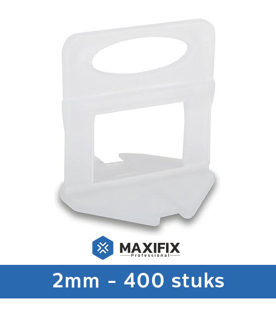 Zak met 400 extra Maxifix Levelling Clips, speciaal ontworpen voor de professional. Perfect als aanvulling op uw bestaande Maxifix Levelling Kit, of als reserve. De clips zijn van hoge kwaliteit en geschikt voor tegels met een dikte tussen 3 en 13 mm. Heeft u niet genoeg aan 400 stuks, dan zijn er ook grotere aantallen clips te verkrijgen. De Maxifix Levelling Clips kunnen als afstand houder worden gebruikt, en zorgen voor een voeg breedte van 2mm.