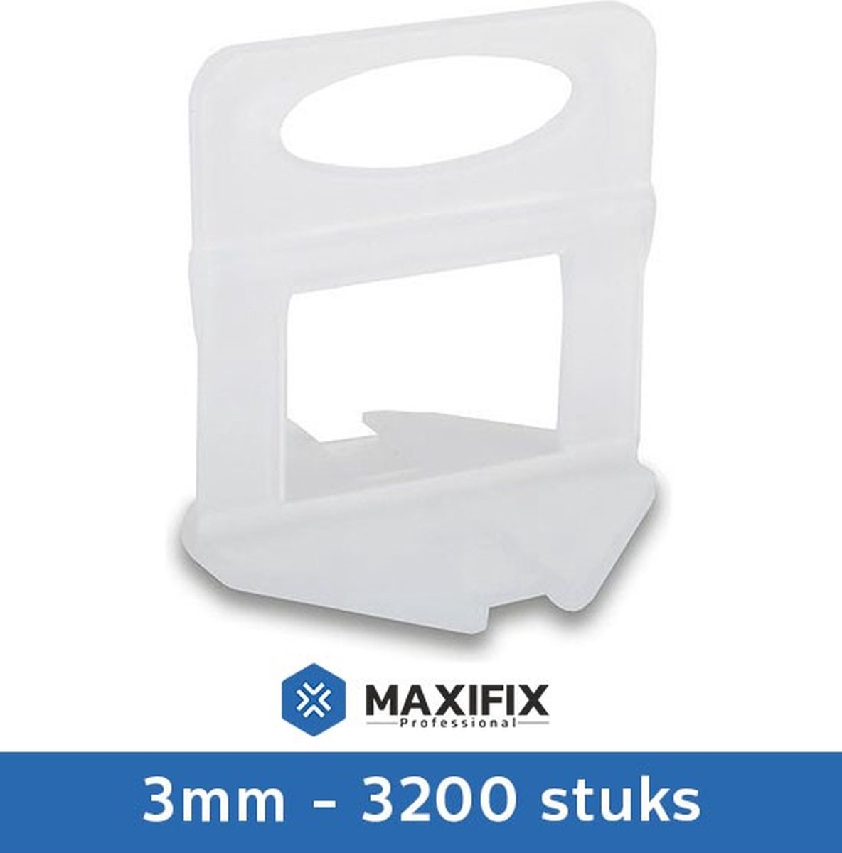 Zak met 3200 extra Maxifix Levelling Clips, speciaal ontworpen voor de professional. Perfect als aanvulling op uw bestaande Maxifix Levelling Kit, of als reserve. De clips zijn van hoge kwaliteit en geschikt voor tegels met een dikte tussen 3 en 13 mm. De Maxifix Levelling Clips kunnen als afstand houder worden gebruikt, en zorgen voor een voeg breedte van 3mm.