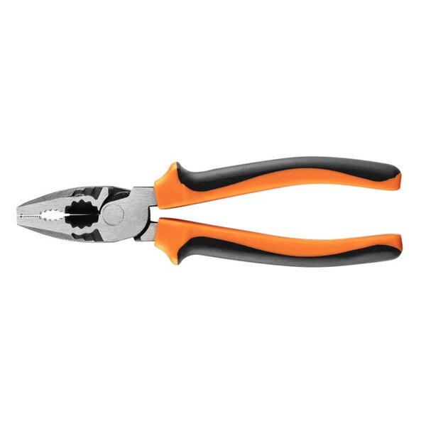 NEO Tools Combinatietang 40% FS 180 mm, 01-152, NEO, professioneel gereedschap voor thuis en in de werkplaats. Deze premium 40% FS-tool kenmerkt zich deuraandrijving. Deze technologie reduceert de maximale drukkracht met ca. 40%. Het ontwerp van de kabel maakt het mogelijk om spijkers, schroeven, kabels en draden vast te pakken zonder ze te pletten. Het getande oppervlak bestaat uit het losdraaien van schroeven en moeren. De tang is gemaakt van hoogwaardig CrNi-staal, dat beschermd is tegen corrosie. In de tweecomponentengrepen is het gedeeltelijk wegglijden tijdens de zwangerschap verdwenen, wat de tang bijzonder ergonomisch maakt. Producteigenschappen: Combinatietang Lengte: 180 mm Voor thuis en in de werkplaats Ontwerp dat het mogelijk maakt om de druk met 40% te verminderen Een speciale opening in de kaken maakt het mogelijk om spijkers en kabels vast te pakken zonder ze te pletten de kaken samen het losdraaien van schroeven CrNi-staal, anti- Corrosiebescherming Ergonomische tweecomponentengreep Met rubber beklede handgreep om uitglijden te voorkomen Materiaal: CrNi-staal Kunststof Rubber Afmetingen: 180 mm