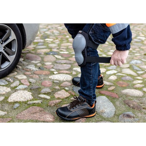 Neo Tools beschermende kniebeschermers beschermen de knie tegen kneuzen en de broek tegen slijtage. Ze bieden comfort bij geknield werken. Kniebeschermers zijn gemaakt van 600 D polyester, dat wordt ondersteund door een hoge duurzaamheid en verhoogde slijtvastheid. Daarnaast zijn de kniebeschermers verstevigd met TRP-overlays, die het contact met de harde ondergrond dempen. De kniebeschermers zijn bevestigd met twee klittenbandsluitingen. Ze hebben een lekweerstand van 1 (op een schaal van 0-1-2), dwz op het niveau van min. 100 N. De beschermers zijn CE-gecertificeerd en voldoen aan de norm EN 14404:2004+A1:2010, die de juiste kwaliteit en veiligheid garanderen.