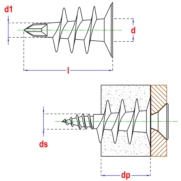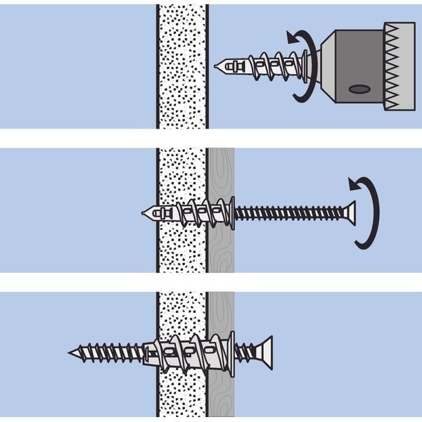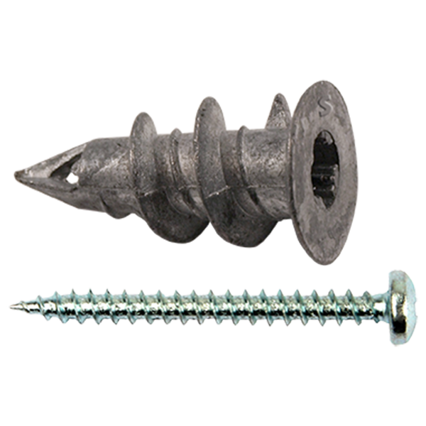 - Speciale plug voor gipskartonplaten, voor gebruik in combinatie met houtschroeven.