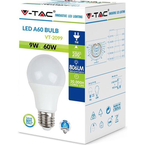 Deze ledlamp van V-TAC heeft een moderne led technologie voor betere betrouwbaarheid en duurzaamheid. De lamp is ter vervanging van een oude halogeenlamp, gaat uren langer mee en heeft een langere levensduur. De lamp is ontworpen voor een standaard E27 houder en is geschikt als residentiële verlichting, commerciële verlichting en decoratief.