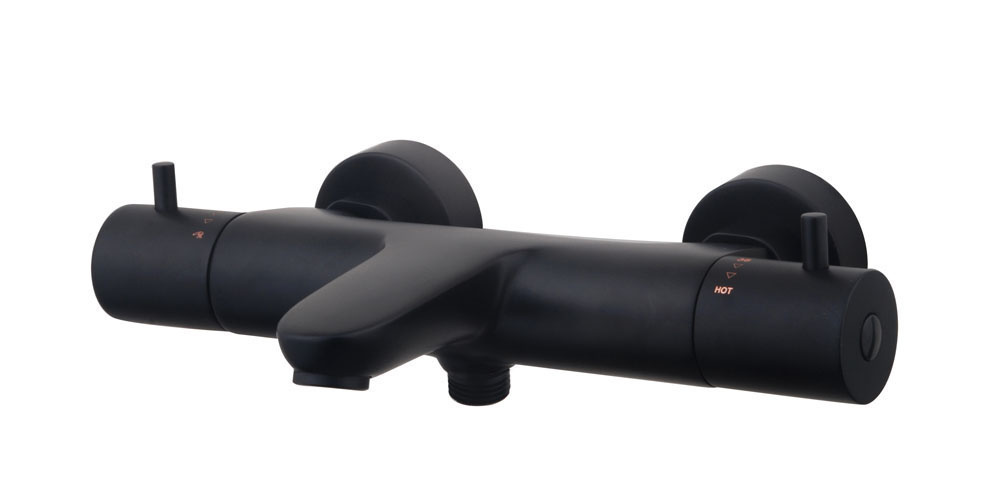 De Caral thermostatische badmengkraan van Wiesbaden Sanitair is een aanwinst boven het bad. De kraan is voorzien van een temperatuurblokkering bij 38°C. Om de temperatuur van het water verder te verhogen druk je de knop van de temperatuurblokkering in. Deze Caral thermostatische badmengkraan is gemaakt van messing en heeft een mat zwart kleur. De hartafstand (de maat die gemeten wordt vanuit het midden van de aansluiting) is 15 cm. Deze kraan bevat een omstelinrichting in de knop. Zo kun je eenvoudig van (hand)douche naar badkraan wisselen.