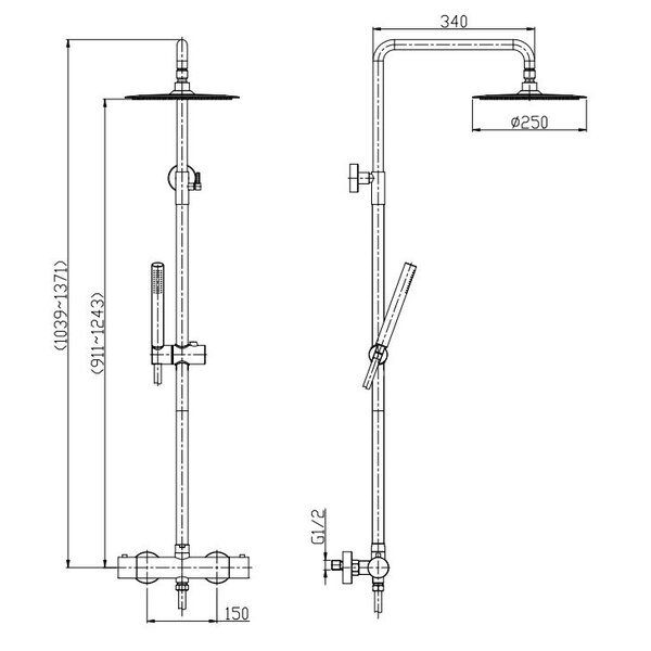 - een thermostatische douchemengkraan (met een hartafstand van 15 cm);
