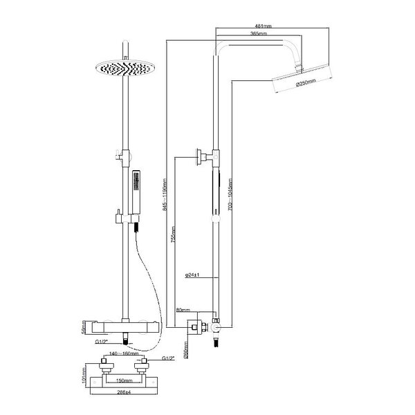 - een thermostatische douchemengkraan (met een hartafstand van 15 cm);