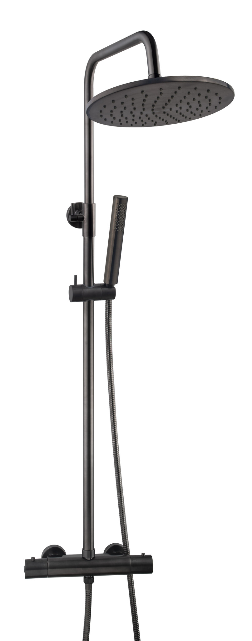 Caral thermostatische regendoucheset opbouw van Wiesbaden Sanitair heeft een gunmetal kleur en bestaat uit: