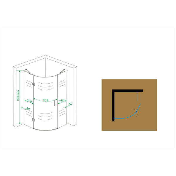 De Curf douchecabine van Wiesbaden Sanitair is met zijn ronde vorm een stijlvol object in de badkamer. De cabine is zowel op de vloer als op een douchebak te plaatsen. Waar de Double douchecabine gebruik maakt van een dubbele deur heeft de Curf douchecabine een enkele deur. Daarom zijn er ook 2 varianten: een links scharnierende versie en een rechts scharnierende versie. Het voordeel van de enkele deur is dat er nog minder profielen gebruikt zijn en het glasoppervlak dus nog groter is.