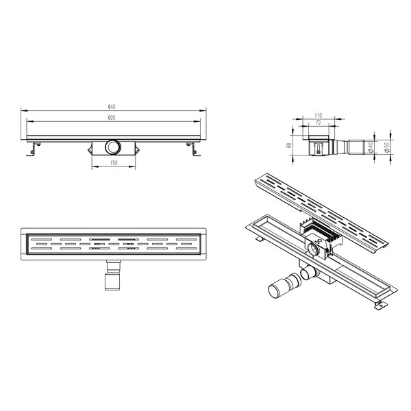 Door zijn mat zwarte kleur is deze douchegoot een echte eyecatcher. In combinatie met andere zwarte elementen van Wiesbaden Sanitair creëer je een moderne eenheid in de badkamer. Daarnaast is door de vormgeving van deze douchegoot de douche in een mum van tijd droog en schoon. Ga met een trekker door de douche richting de goot en het water wordt goed afgevoerd.