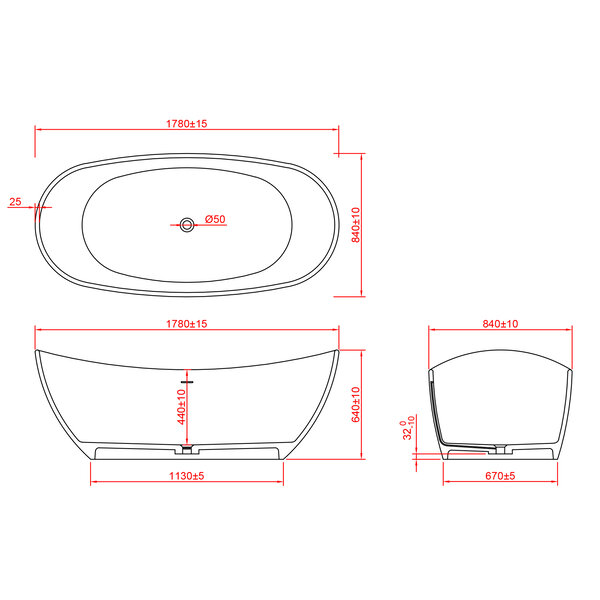 Het bad wordt geleverd inclusief clickwaste, sifon en met een flexibele afvoerslang. Let op: er dient een uitsparing in de vloer gemaakt te worden ter hoogte van de afvoer. Deze is lager dan de zijwand van het bad.