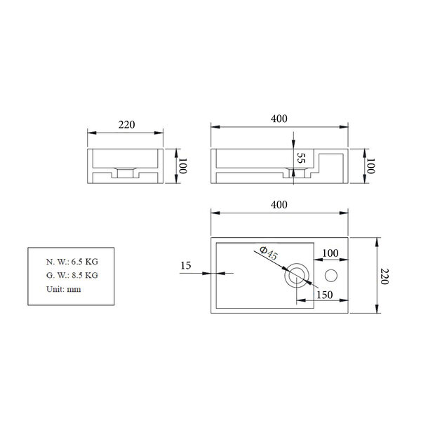 Wiesbaden Noble Solid Surface Fontein - Kraangat Rechts - 36x18x10cm - Mat Wit