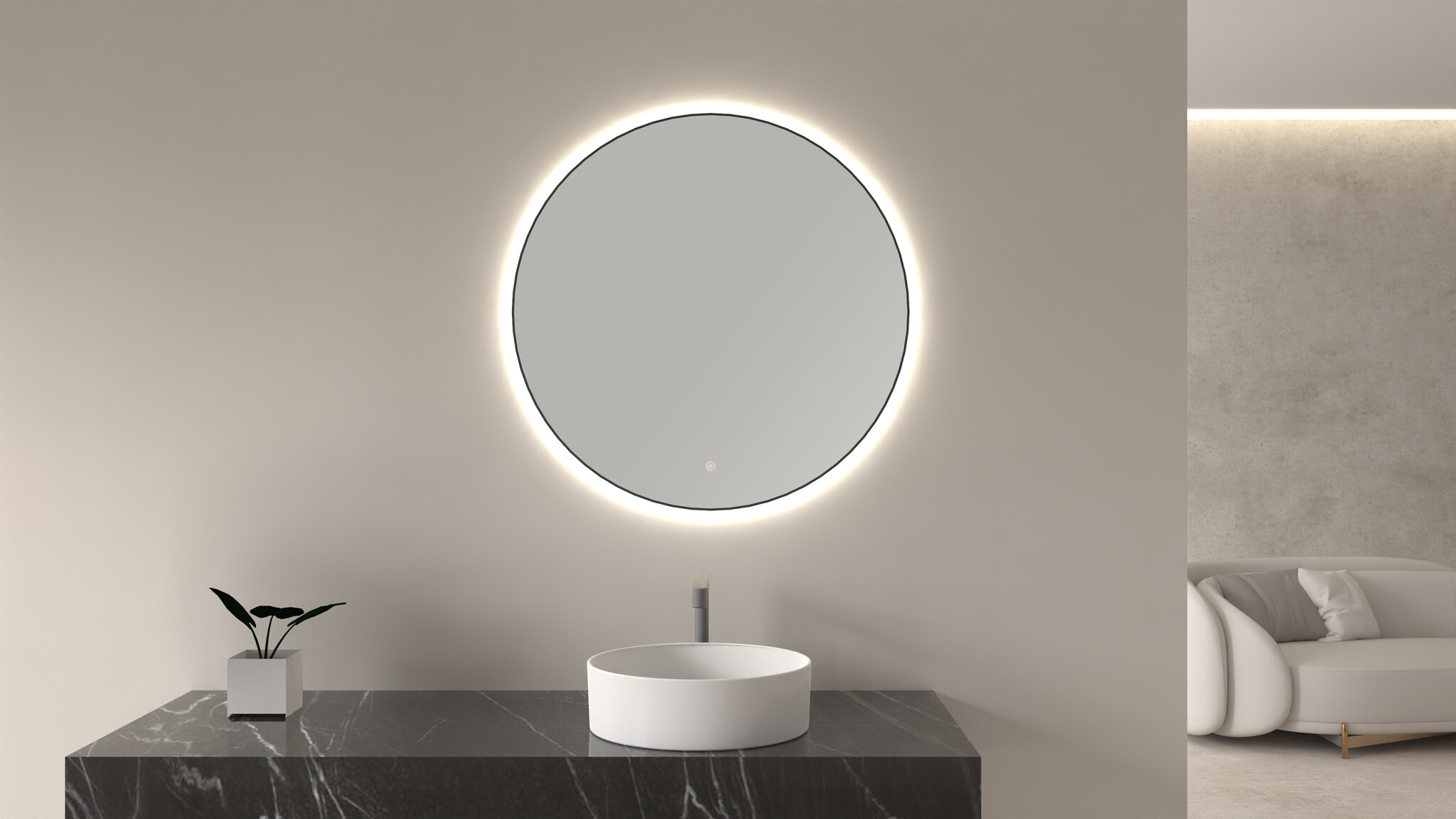 De spiegel is spatwaterdicht (IP44) en wordt geleverd inclusief bevestigingsmaterialen. De Wiesbaden spiegel is in verschillende maten (60,80,100cm) en kleuren (mat zwart en geborsteld messing) verkrijgbaar.