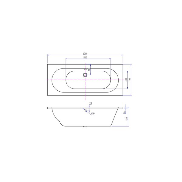 Dit Portus ligbad van Wiesbaden heeft een rechthoekige vorm met hoekige randen. De binnenkant heeft een ronde vorm. Daarnaast heeft dit bad een overloop met een diameter van 50 mm. Het afvoergat heeft een diameter van 53 mm.