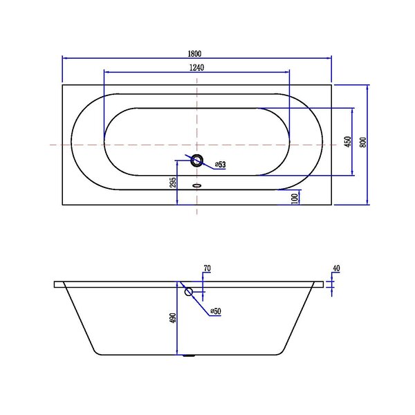 Dit Portus ligbad van Wiesbaden heeft een rechthoekige vorm met hoekige randen. De binnenkant heeft een ronde vorm. Daarnaast heeft dit bad een overloop met een diameter van 50 mm. Het afvoergat heeft een diameter van 53 mm.