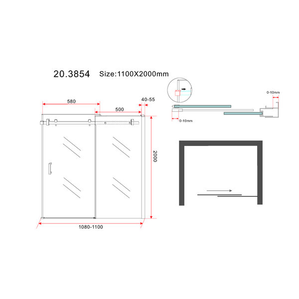 De Puerta schuifdeur is omkeerbaar, gemaakt van gehard veiligheidsglas en met NANO-coating afgewerkt aan beide kanten. Hij wordt geleverd zonder stabilisatiestang.