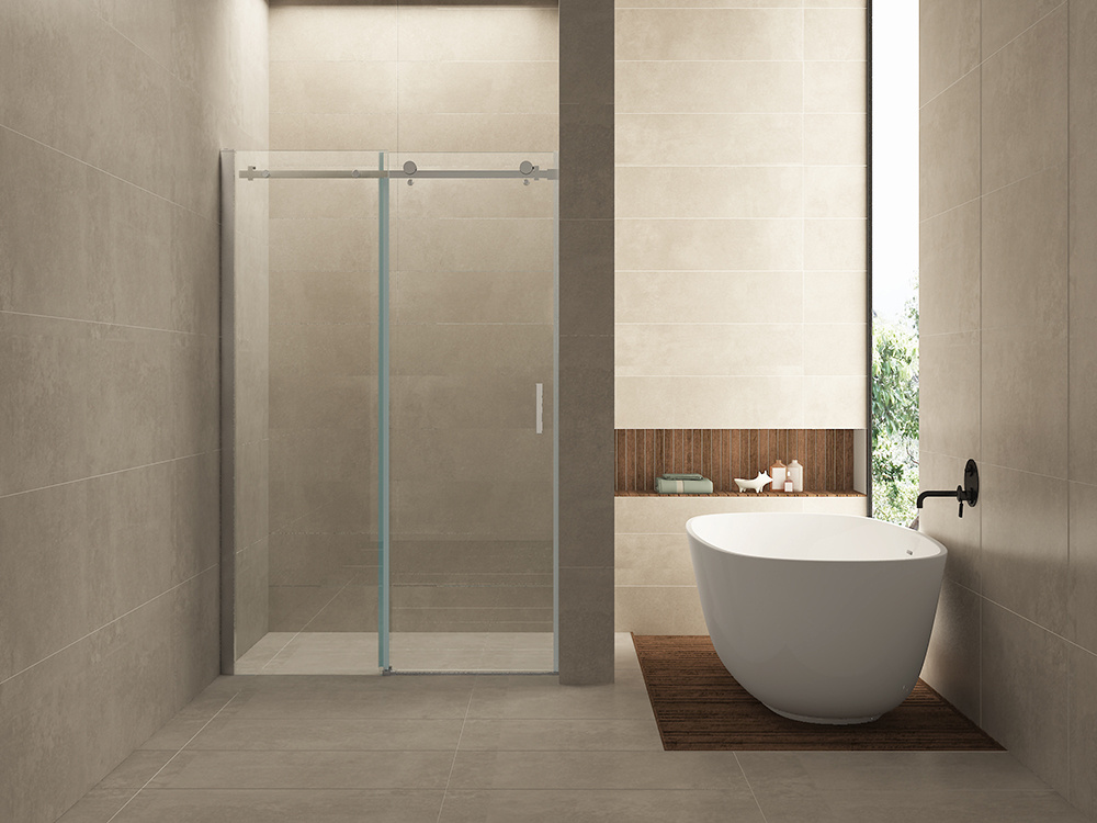 De Puerta schuifdeur is omkeerbaar, gemaakt van gehard veiligheidsglas en met NANO-coating afgewerkt aan beide kanten. Hij wordt geleverd zonder stabilisatiestang.
