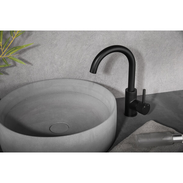 De Ribbd serie bestaat uit vier prachtige kranen en bijbehorende producten die elk in vier kleuren te verkrijgen zijn. Wat deze kranen serie bijzonder maakt is het geribbelde motief. Een klein detail dat toch een groot effect heeft op de look van je badkamer! Deze wastafelmengkraan komt in de kleur mat zwart en heeft een draaibare uitloop. Een kraan met draaibare uitloop zorgt ervoor dat je een stuk naar rechts en links draaien. Hierdoor ben je flexibeler in het gebruik van de kraan. De kraan is voorzien van een PVD-coating, dit is een toplaag die beschermt tegen corrosie en krassen.