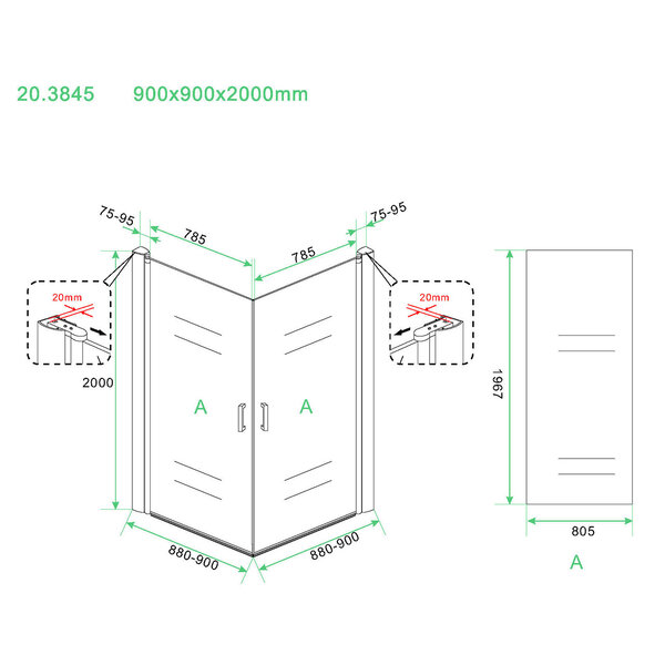 De Salone douchecabine van Wiesbaden Sanitair is qua vormgeving gelijk aan de Harm douchecabine, maar daar waar de Harm douchecabine één deur en één vaste wand heeft is de Salone douchecabine voorzien van 2 deuren. De Salone douchecabine is eenvoudig te plaatsen op de vloer of op een douchebak. Doordat in het ontwerp gebruik is gemaakt van zo min mogelijk profielen blijft de doucheruimte erg licht.