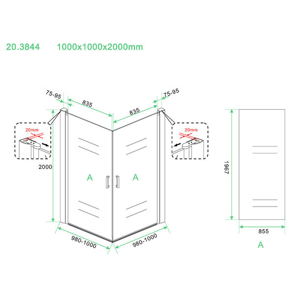 De Salone douchecabine van Wiesbaden Sanitair is qua vormgeving gelijk aan de Harm douchecabine, maar daar waar de Harm douchecabine één deur en één vaste wand heeft is de Salone douchecabine voorzien van 2 deuren. De Salone douchecabine is eenvoudig te plaatsen op de vloer of op een douchebak. Doordat in het ontwerp gebruik is gemaakt van zo min mogelijk profielen blijft de doucheruimte erg licht.