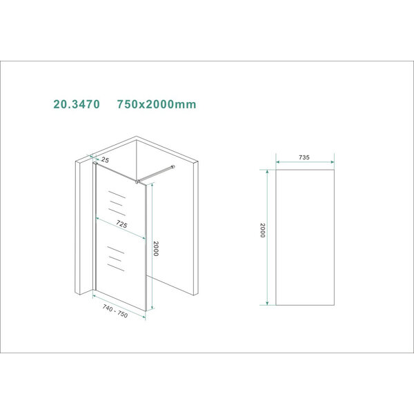 Deze Slim inloopdouche zonder profiel van Wiesbaden Sanitair van 75 cm breed is gemaakt van 8 mm dik gehard veiligheidsglas en met NANO-coating afgewerkt.