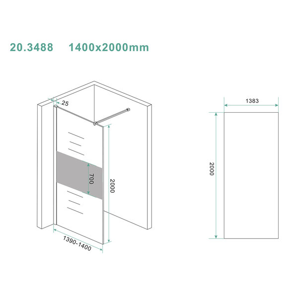 Deze Slim inloopdouche gedeeltelijk matglas zonder profiel van Wiesbaden Sanitair bevat een gezandstraalde/gematteerde band in het midden van het glas. Hierdoor heb je tijdens het douchen wat meer privacy. Deze inloopdouche is 140 cm breed, gemaakt van 8 mm dik gehard veiligheidsglas en met NANO-coating afgewerkt.