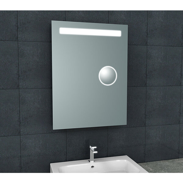 De Tigris spiegel met LED verlichting & scheerspiegel van Wiesbaden Sanitair is door zijn luxe uitstraling een echte aanwinst voor elke moderne badkamer. De Tigris spiegel heeft bovenin de spiegel een geïntegreerde horizontale LED lichtbalk (17,4 Watt) van 6400 Kelvin (daglicht). Deze is door middel van een drukschakelaar aan en/of uit te zetten. Door de geïntegreerde transformator kun je de spiegel direct op het lichtnet (220V) aansluiten. De LED verlichting (energielabel A) heeft een gebruiksduur van ongeveer 50.000 branduren.