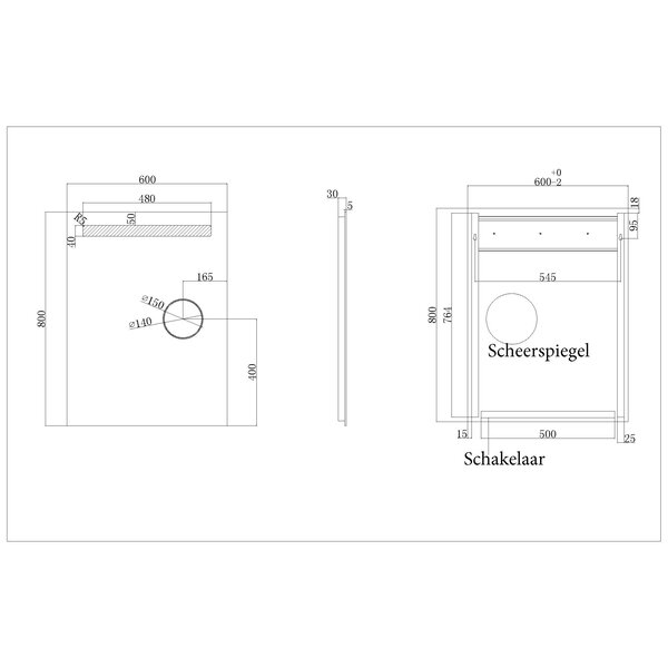 Daarnaast bevat deze wandspiegel aan de rechterkant een geïntegreerde scheerspiegel met een diameter van 150 mm. Een losse scheerspiegel op uw meubel is hierdoor overbodig. Dit scheelt veel ruimte en je hebt beide spiegels op ooghoogte.